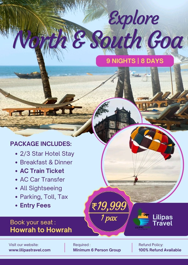 • Morning: Arrive in North Goa, check into your accommodation, and head to Baga Beach for a lively beach day.