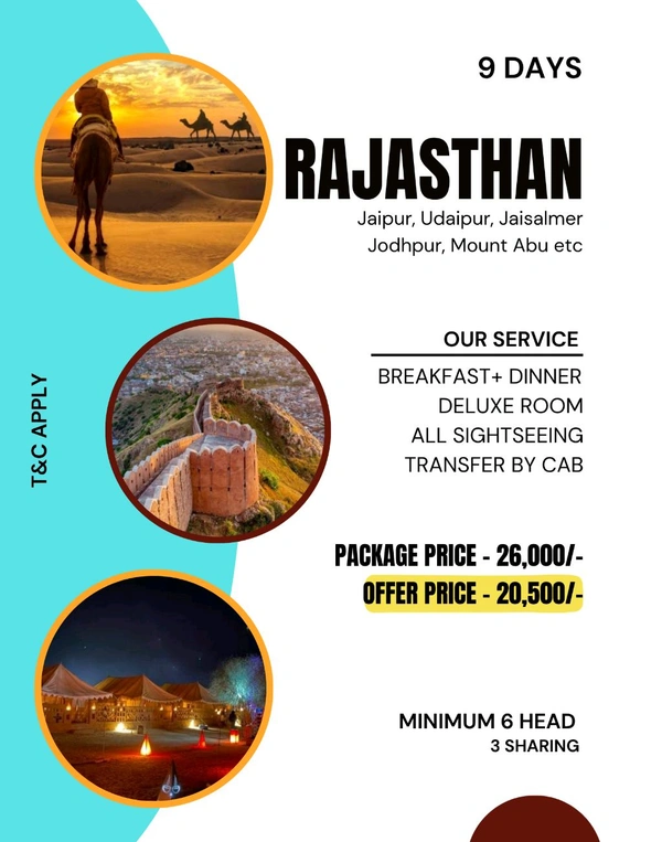 This tour plan includes: *Jaipur, Udaipur, Mount Abu, Jaisalmer & Jodhpur*